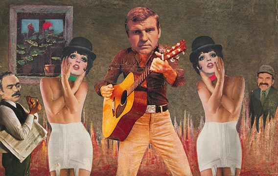 The first thing to know about Ion Barladeanu’s eye-popping collages is that they are actually film stills. Assembled in widescreen, his scenes of spaghetti westerns, spy thrillers and war epics star legends of the silver screen (Roger Moore, Sophia Loren and Brigitte Bardot among them) alongside the corrupt politicians of communist-era Romania.